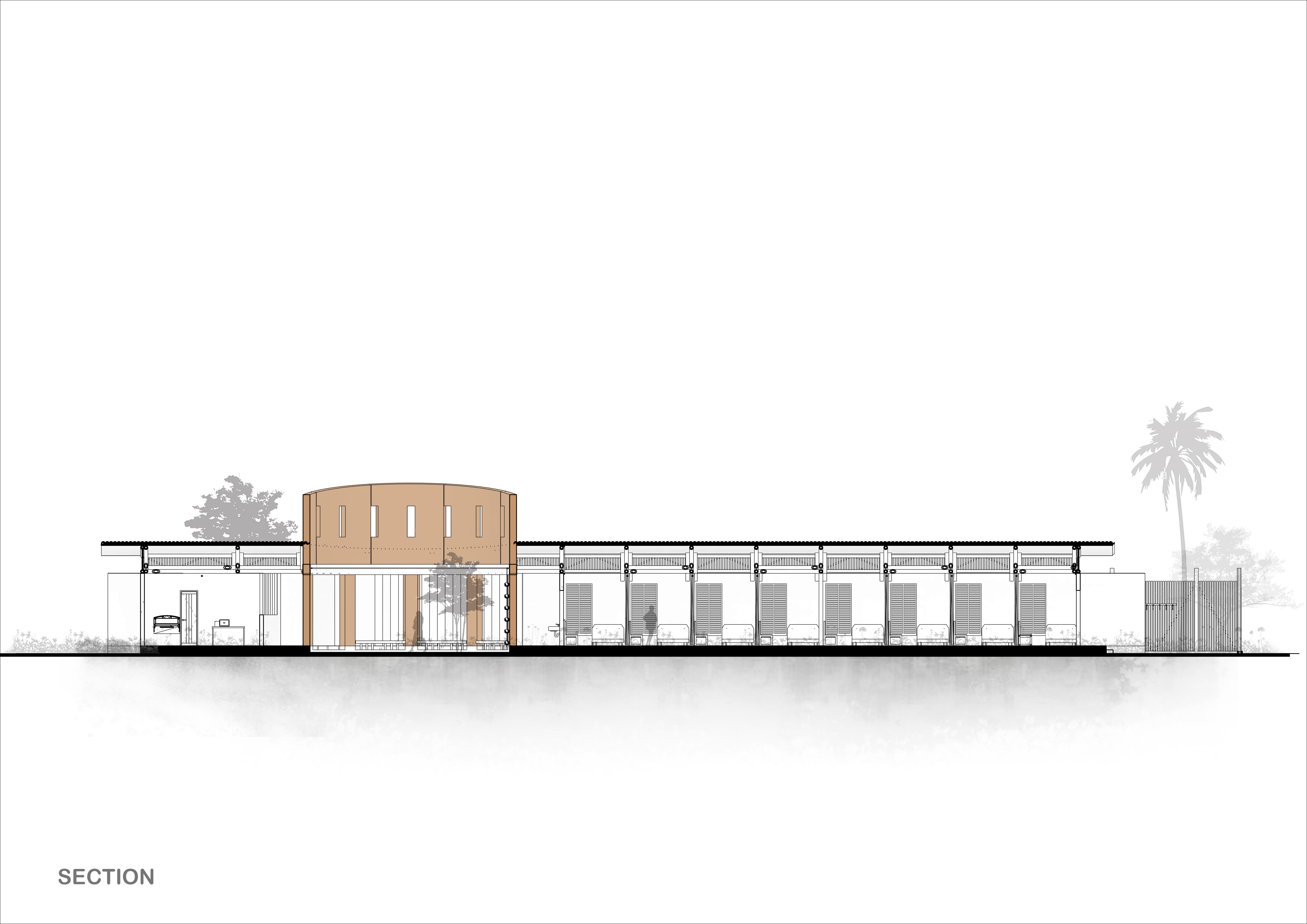 features the essential amenities; along with a central courtyard-the womb- an area for rest, recuperation and gathering. This indoor-outdoor space allows mothers to have access to the outside(and fresh air) even when the main entrance is closed off. A circular atrium, this region is the project rotule and meeting point of family and friends as they wait anxiously for the mothers , soon to be born children and babies. The planting and foliage in this zone is calming and refreshing- with plants such as citronella and oregano to repel any mosquitoes and insects.