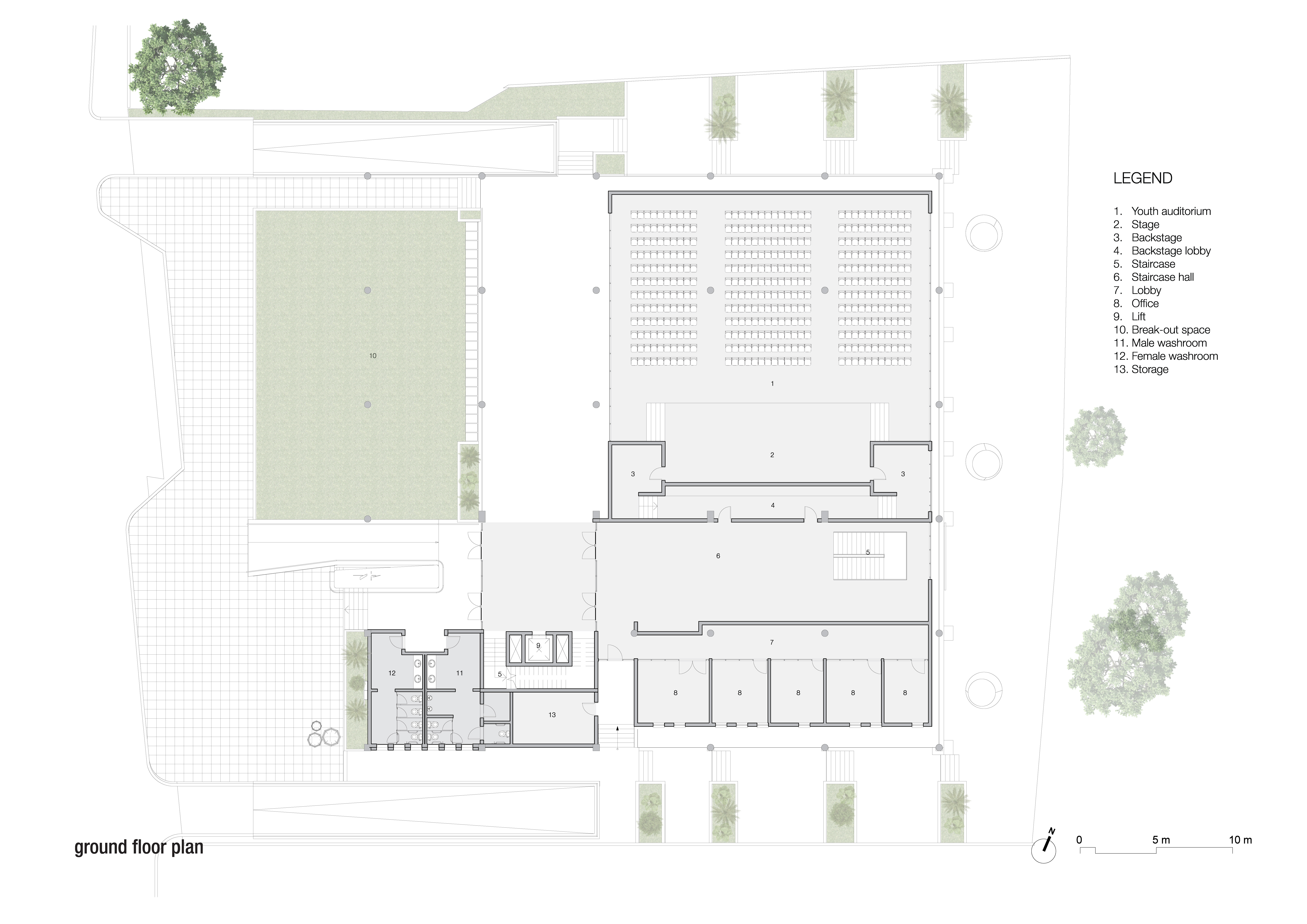This same architectural form is also a call to worship seen as hands raised ready to receive from the Lord. The cross, emblematic of the Christian faith, strategically stands tall and proud on the upper right of the front elevation and entrance, as a reminder of the sacrifice of Christ and a bold identification of the building as a Christian haven and a place of Worship. The entrance, designed like a mouth with a protruding ramp welcomes all to the house of the Lord.