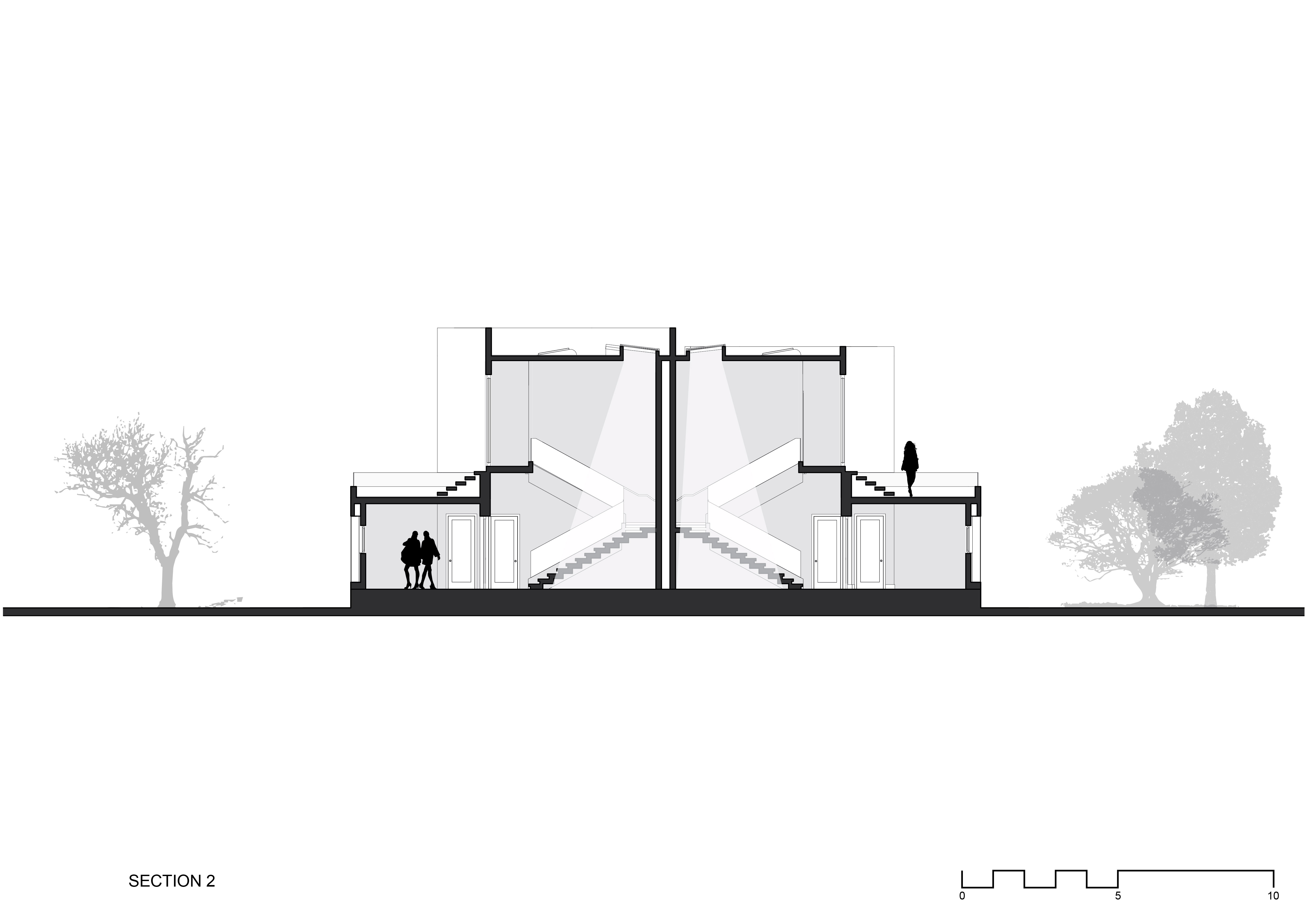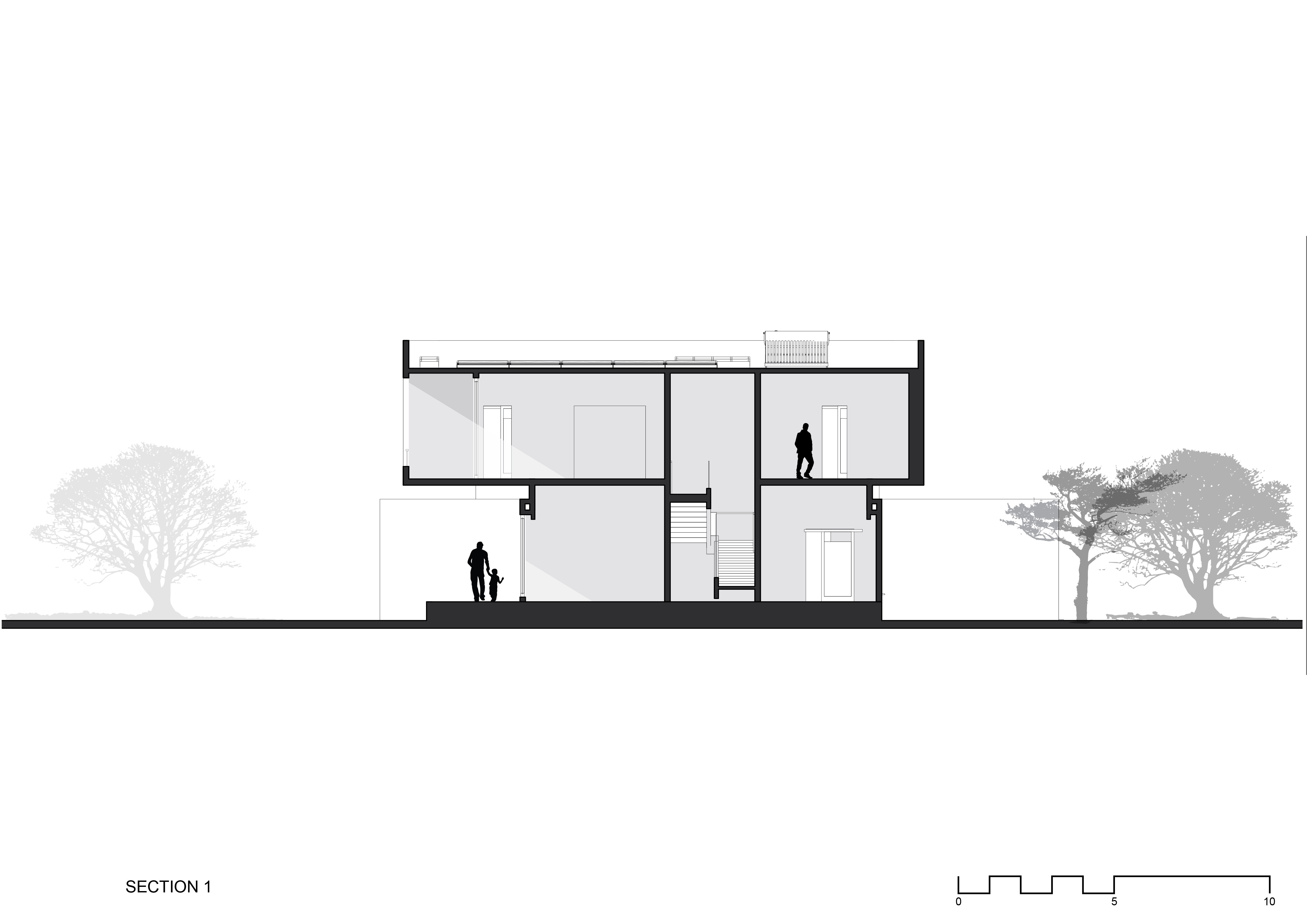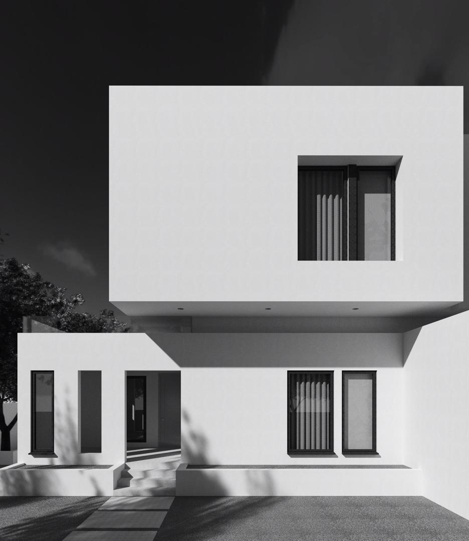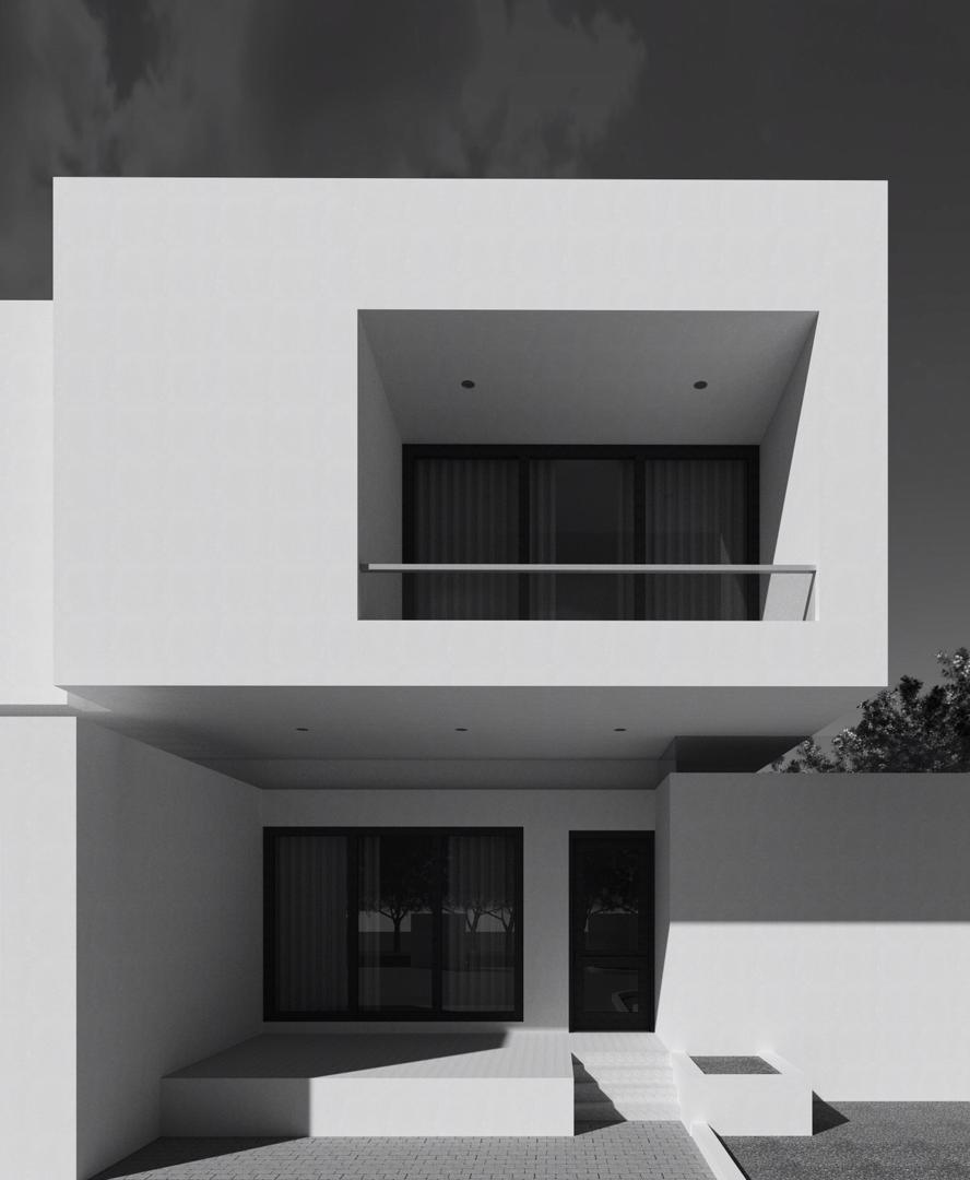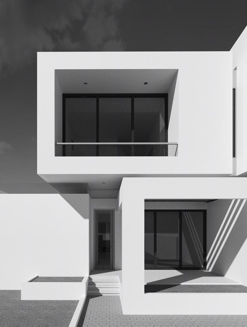 The design of this house reimagines the semi-detached house concept as a single composition while still mirroring the building’s internal spatial configuration. This reimagination is achieved by making the building form a completely asymmetrical one with subtle hints of individuality within the composition; so, the idea of two units is somewhat still maintained.